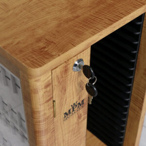 Výstavní displej na hodinky s logem MPM-quality (možnost změny loga dle domluvy) s ručním otáčením a s možností uzamknutí na klíč. Vnější materiál MDF s laminem dřeva, vnitřní část textil, sklo akrylátové.