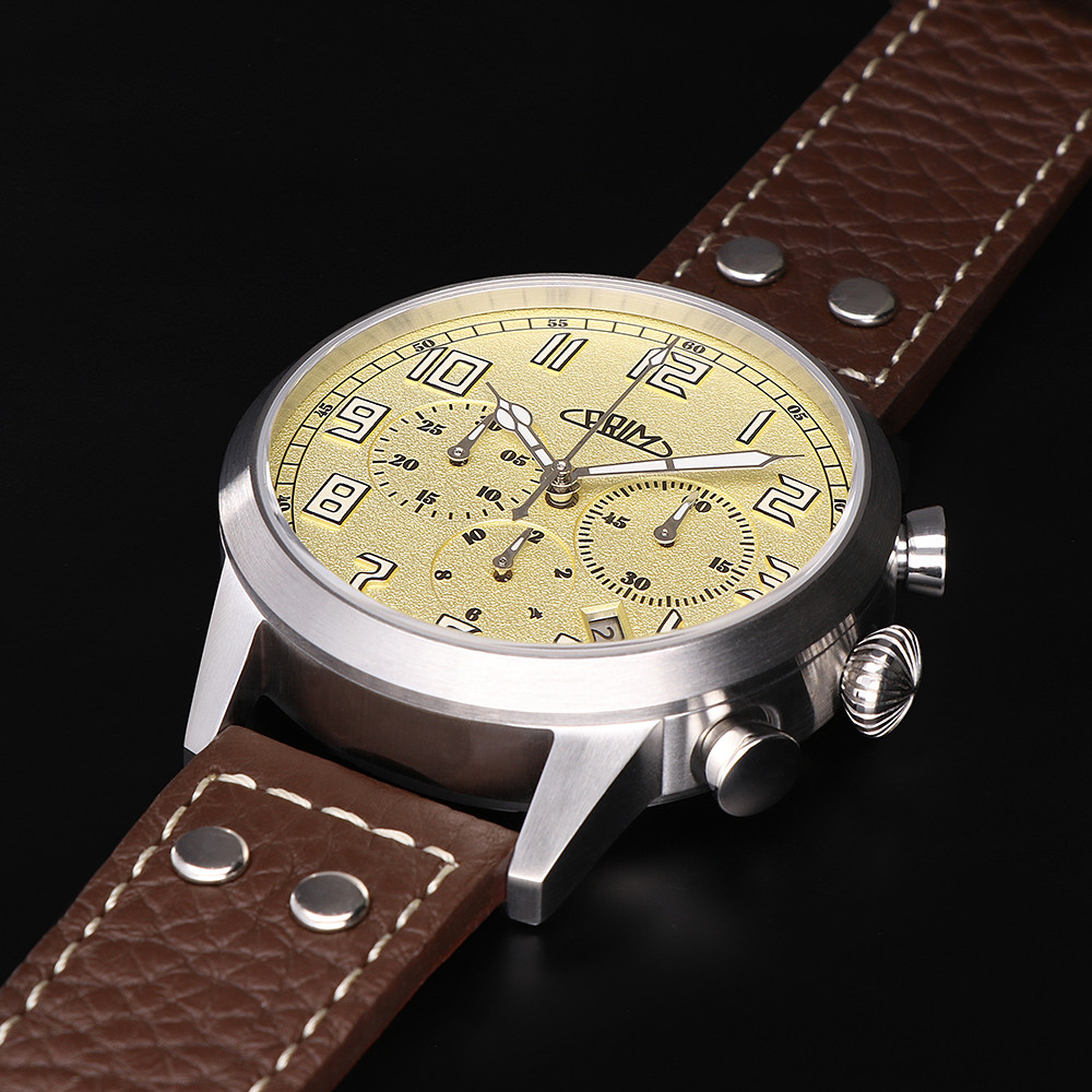 Exkluzivní pilot mechanické hodinky s chronografem a automatickým natahováním. Pouzdro je vyrobeno z ušlechtilé nerezové oceli 316L v kombinaci lesku a matu. Po úspěšné edici předchozího modelu, jsme se opět rozhodli použít strojek NE88A (Seiko), který ocení opravdoví znalci. Samotná výroba kalibru pro naši zakázku trvala přes 2 roky. Jedná se o jemný hodinkový strojek, který na scénu přišel v srpnu roku 2014. Vyznačuje se moderní vysokou frekvencí, rezervou chodu více než 45 hodin, vysokým množstvím kamenových uložení (tedy 34 syntetických rubínů), které snižují možné tření hřídelí a dalších komponentů. Kalibr má moderní stavbu, je přesný a spolehlivý, zároveň majitel ocení jemný chod tlačítek chronografu.