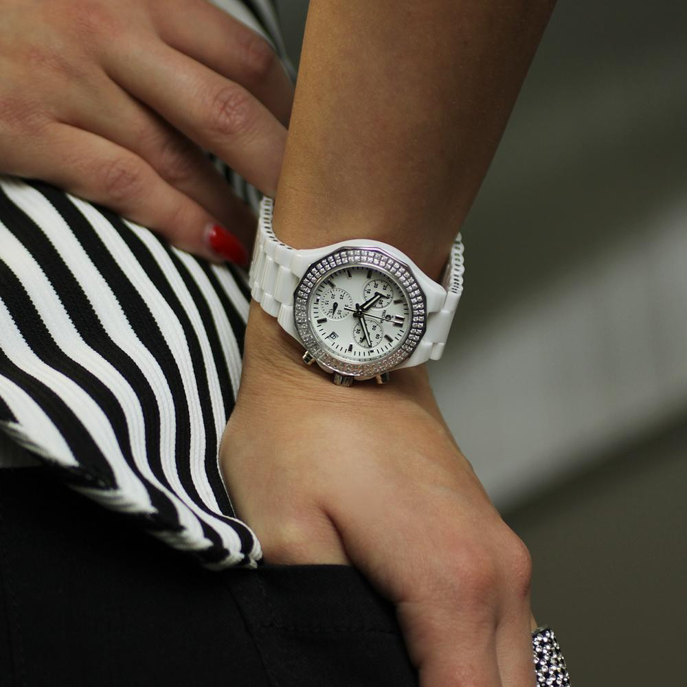 Kolekce dámských luxusních hodinek PRIM v sobě kombinuje keramické provedení v kombinaci s leštěnou ušlechtilou ocelí. V celé kolekci najdete moderní propojení kubické zirkonie a kvalitních materiálů.