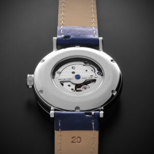 Pouzdro hodinek (42mm) je vyrobeno z leštěné ušlechtilé nerezové oceli 316L, do nějž je vsazen japonský strojek Miyota 8315 s automatickým nátahem, uzavřen šroubovacím dýnkem se skleněným průhledem na pracující strojek. Voděodolnost 5 ATM zaručuje odolnost proti vlhkosti při běžném používání. Pod plochým safírovým sklíčkem s antireflexní úpravou se nachází elegantní hladký číselník, doplněný jemnými aplikovanými indexy. Hodinky mají rovněž ukazatel aktuálního data umístěn na pozici 3. hodin. Hodinky zdobí ručičky ve tvaru listu, jejichž elegantní lesk přináší do celého designu nádech jemnosti. Model je dodáván s vysoce kvalitním ručně šitým koženým řemínkem se signovanou klasickou trnovou sponou v barvě pouzdra. Model je vyroben do páru k dámské edici Elegant, která patří mezi naše nejoblíbenější modely.