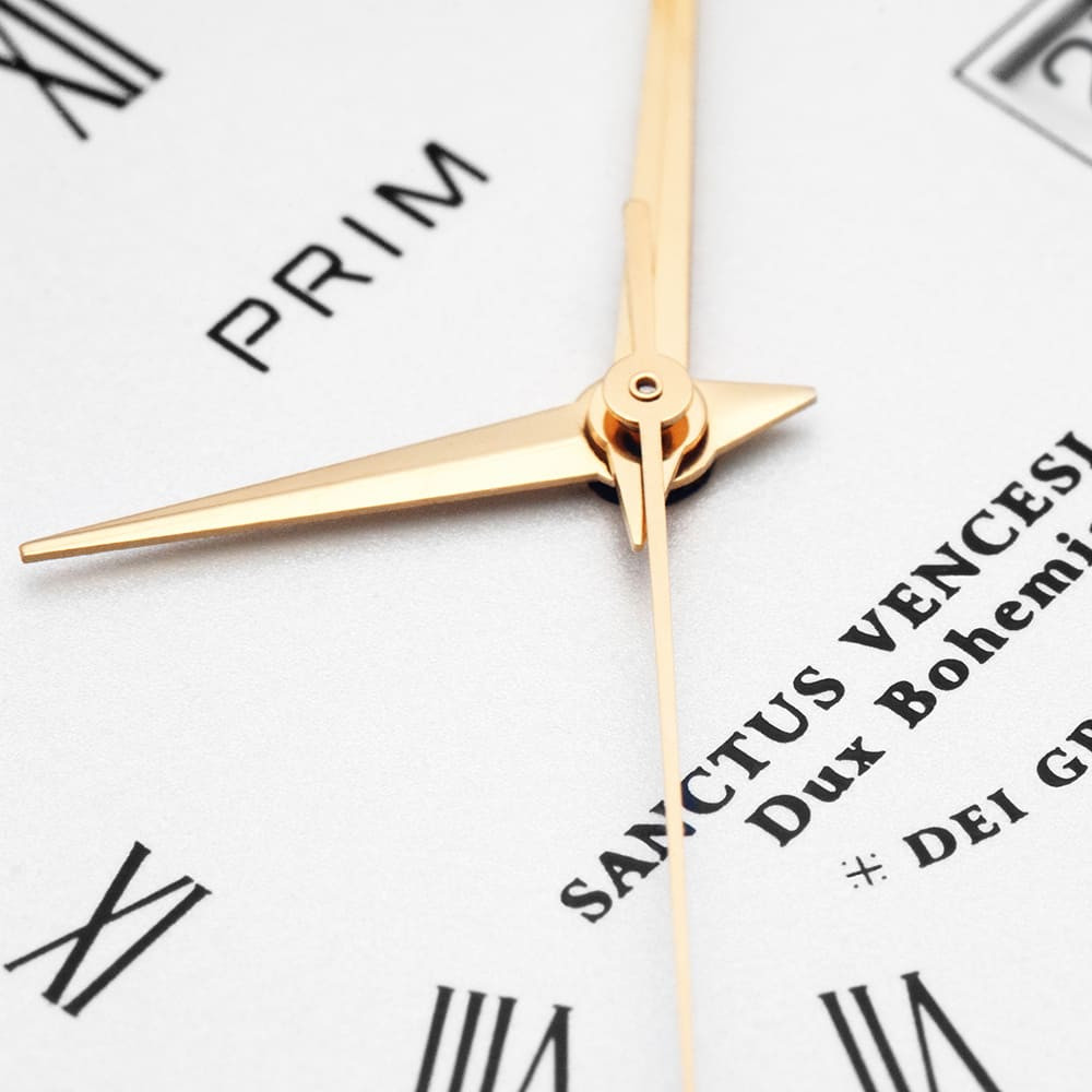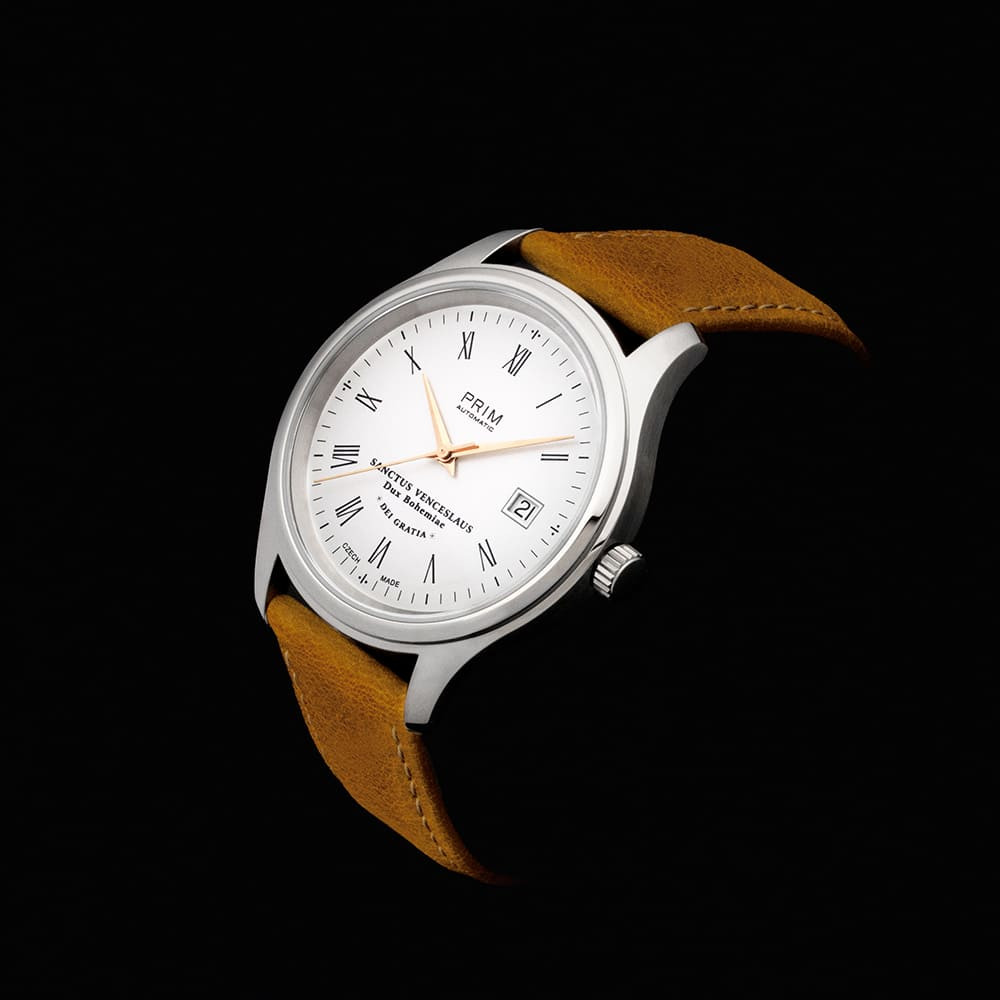 Klasické společenské hodinky s netradičním designem číselníku z oblíbené řady PRIM Automatic. Hodinky připomínají odkaz sv. Václava – významné historické osobnosti a patrona českých zemí. Na elegantním číselníku vynikají indexy označené římskými číslicemi. Decentní nápis velebí nejznámějšího českého světce latinským nápisem ve znění: „Sanctus Venceslaus, Dux Bohemiae, Dei Gratia", tedy „Svatý Václav, z Boží milosti kníže český“.